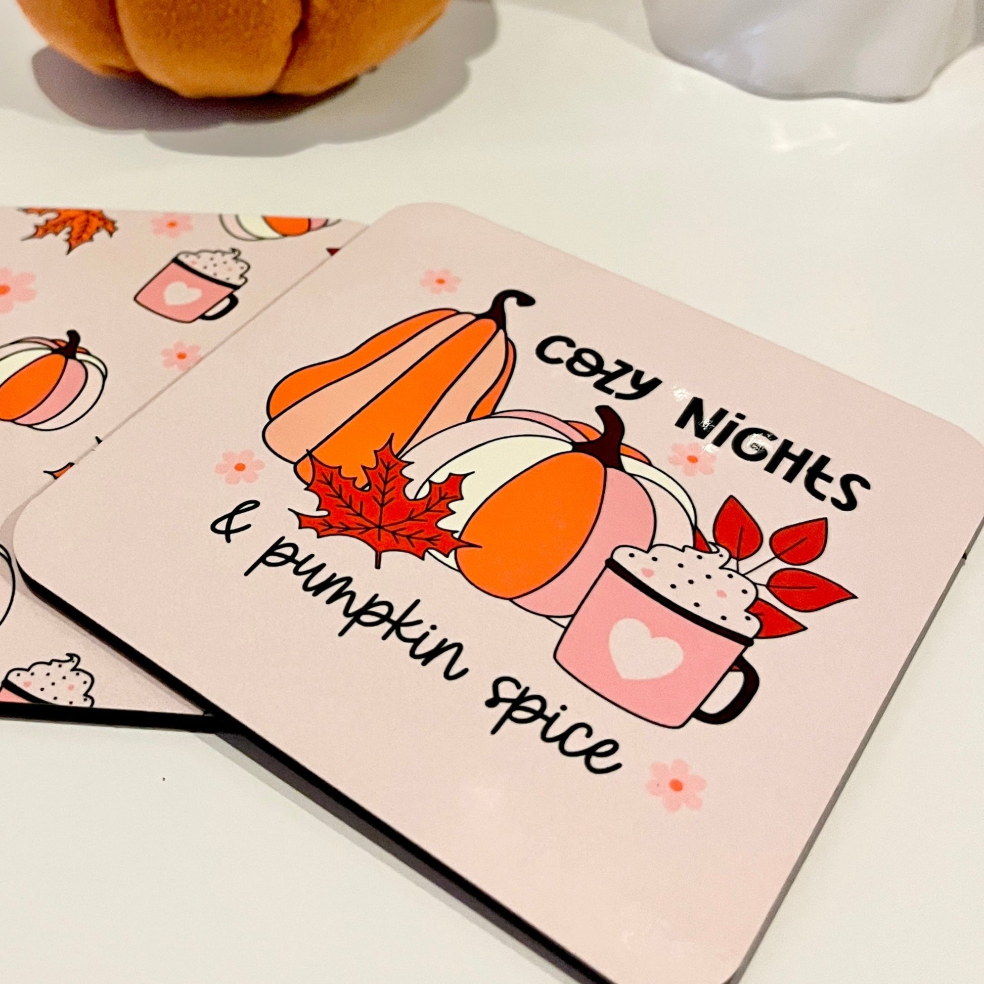 Cozy Nights and Pumpkin Spice Cork Back Coaster