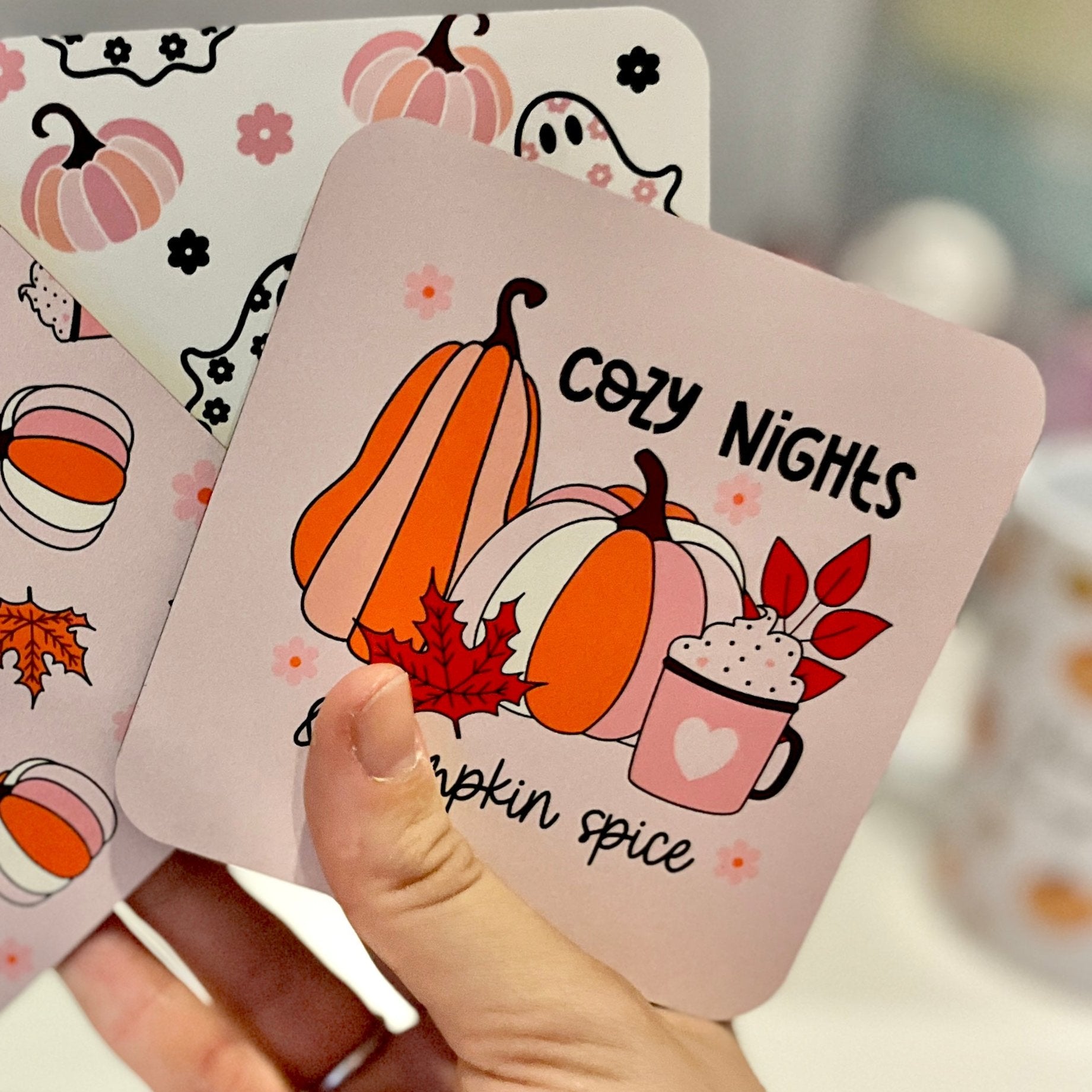 Set the mood for a cozy night in with these pumpkin spice coasters! Printed with fun Halloween and autumn designs, they'll protect your surfaces with a touch of seasonal charm. Perfect for spicing up your decor and keeping your drinks safe.