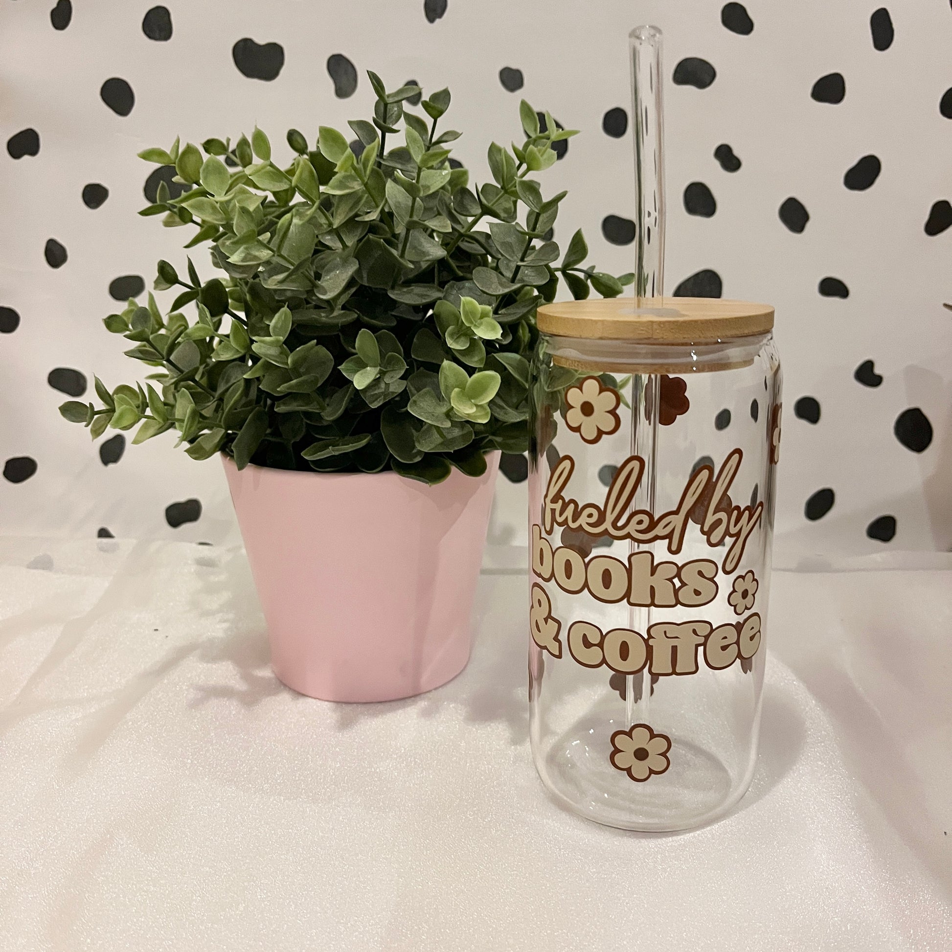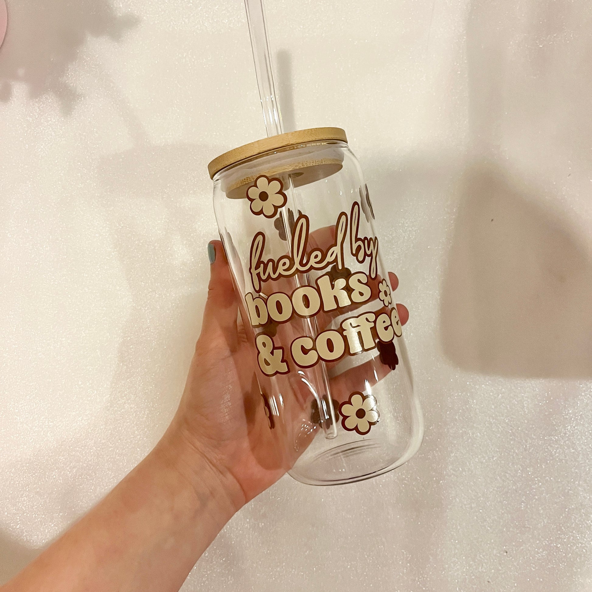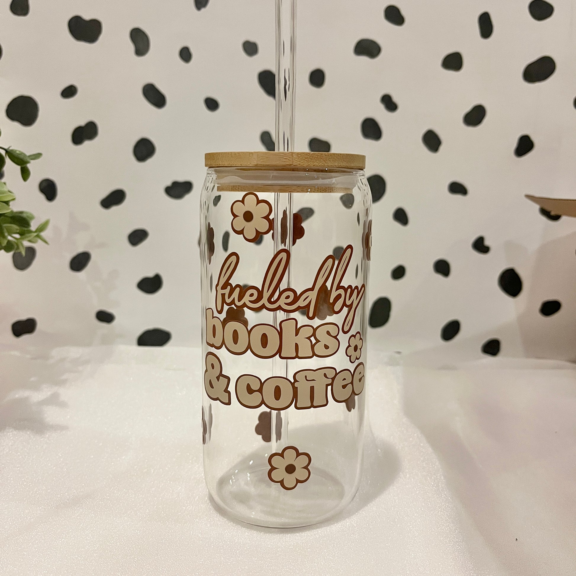Fueled By Books & Coffee Libbey Glass With Lid & Straw