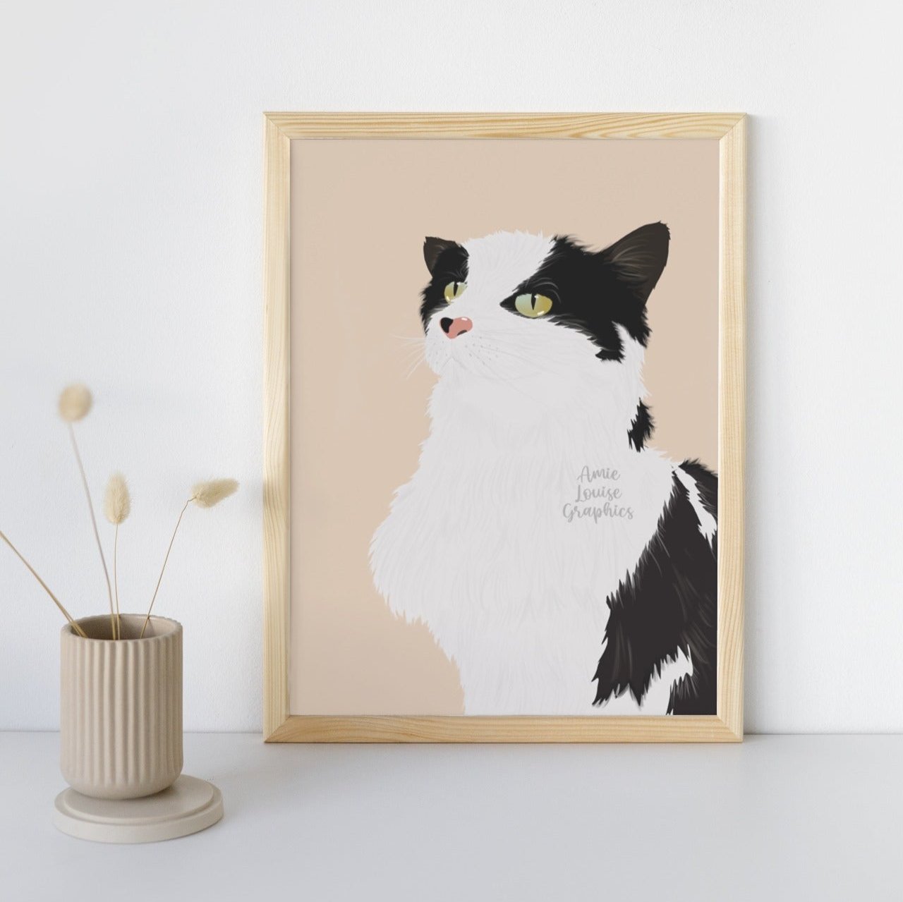 The perfect addition to your home, or a perfect gift for a pet-loving friend or family member. A one-of-a-kind piece of art, digitally illustrated by hand using a photo selected by you.