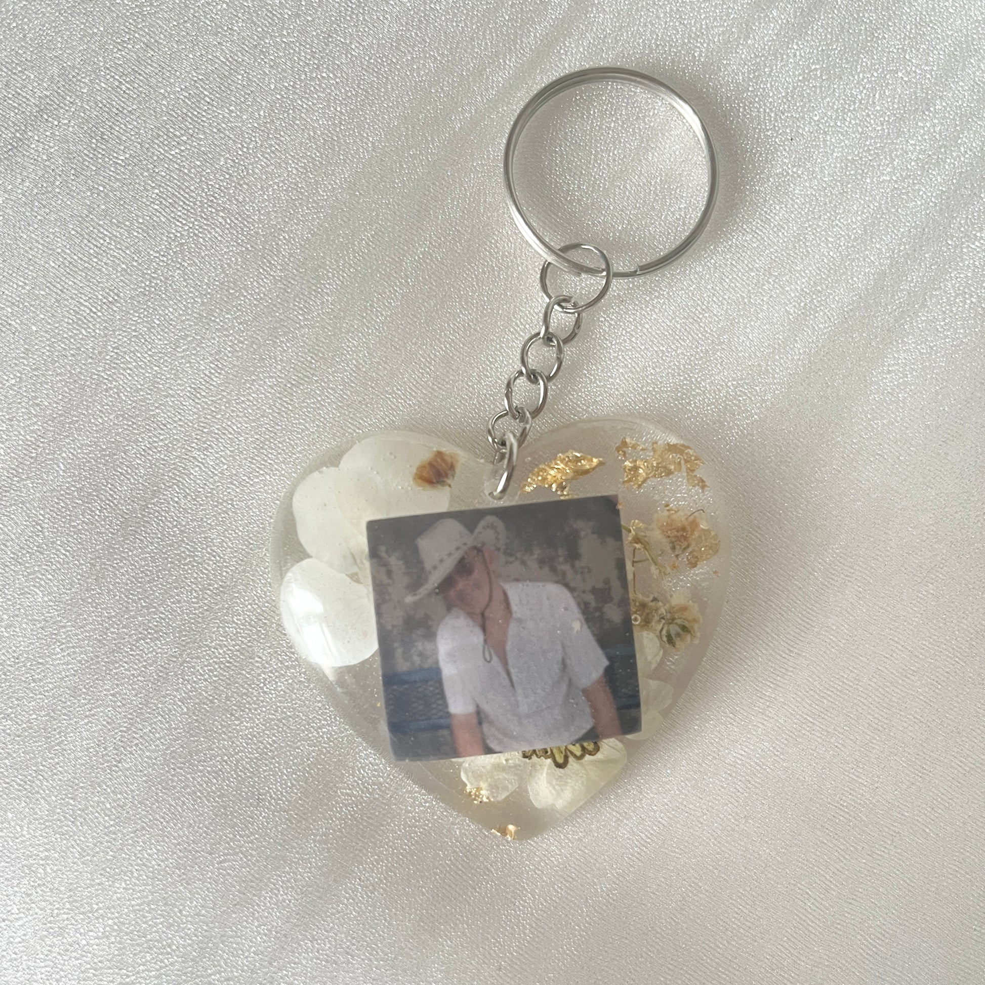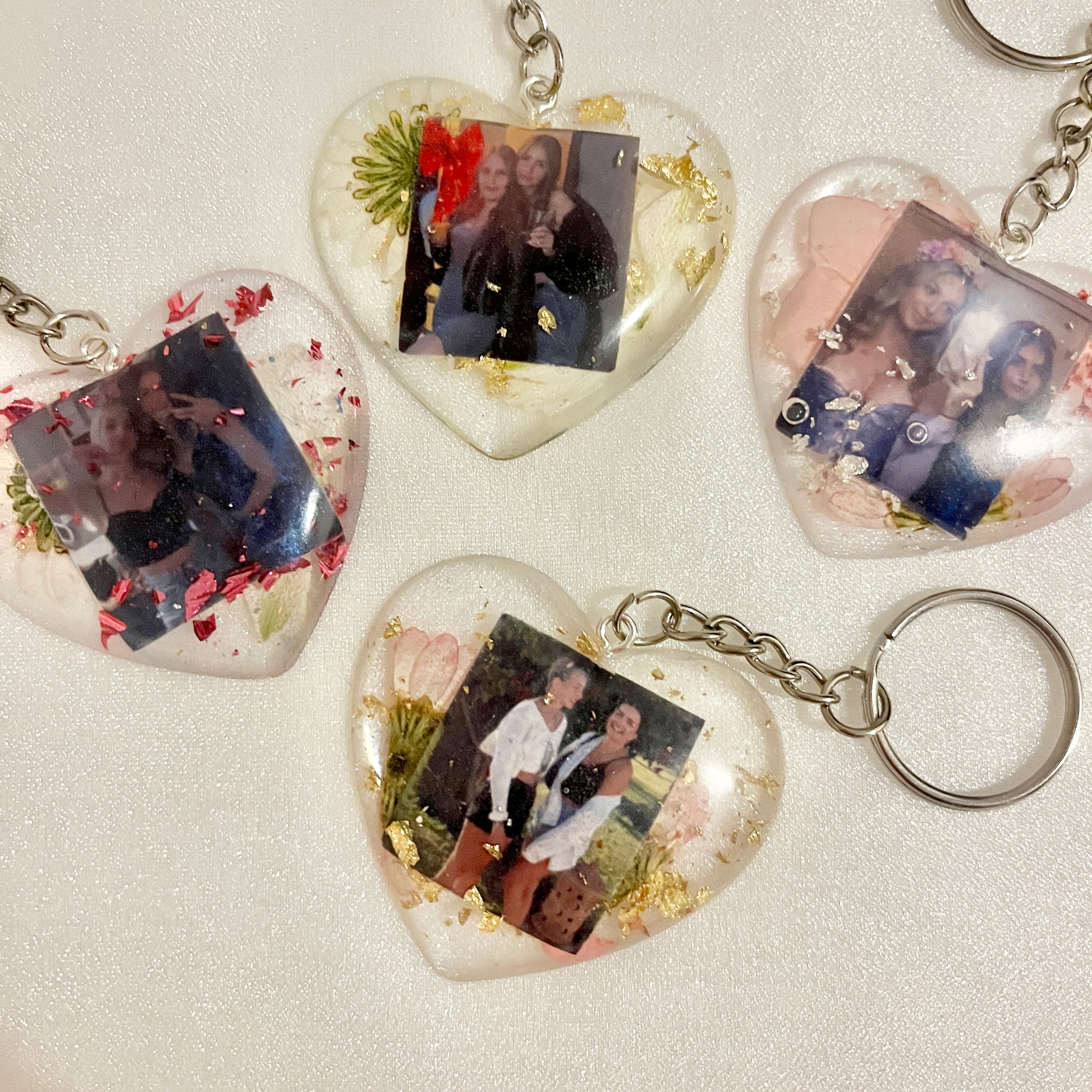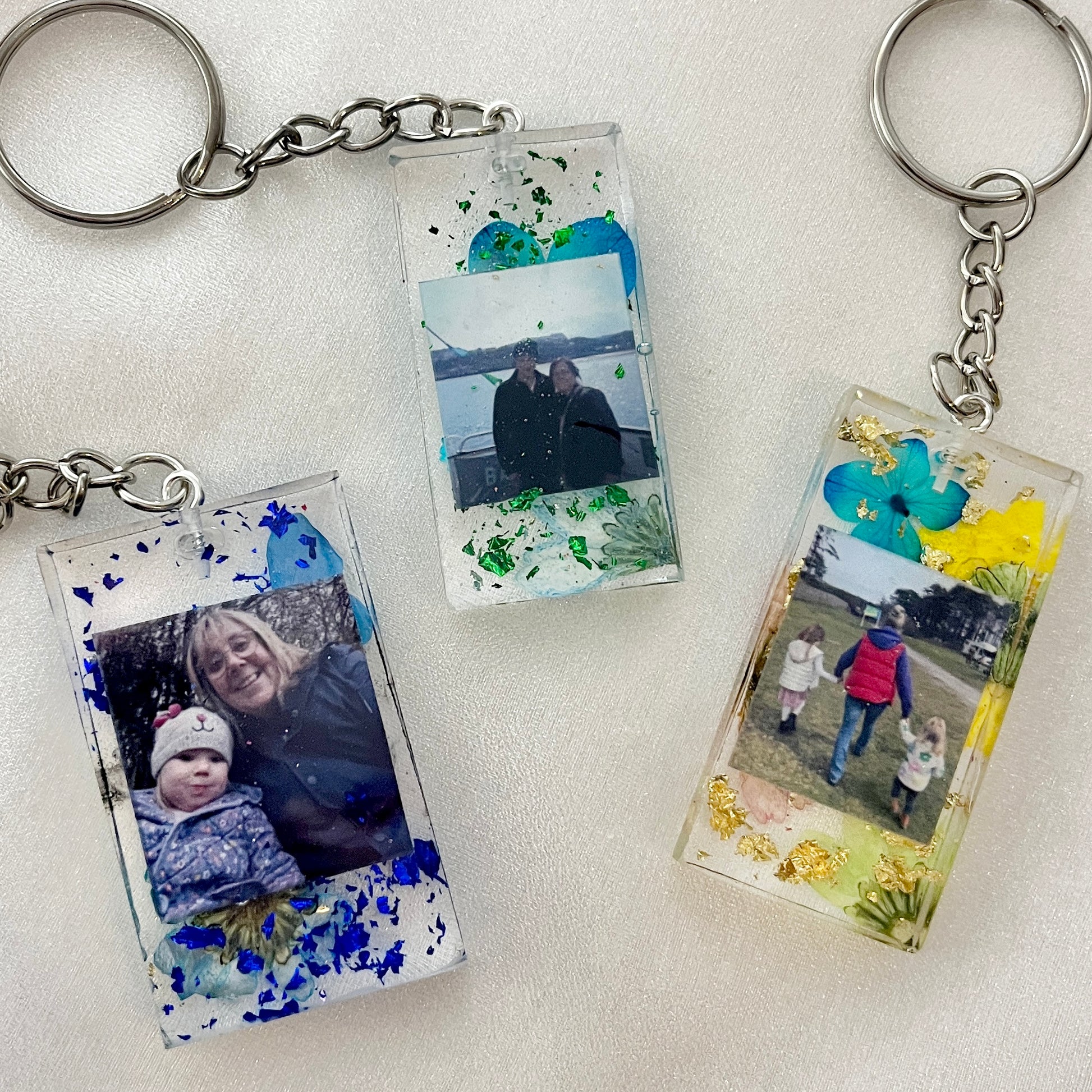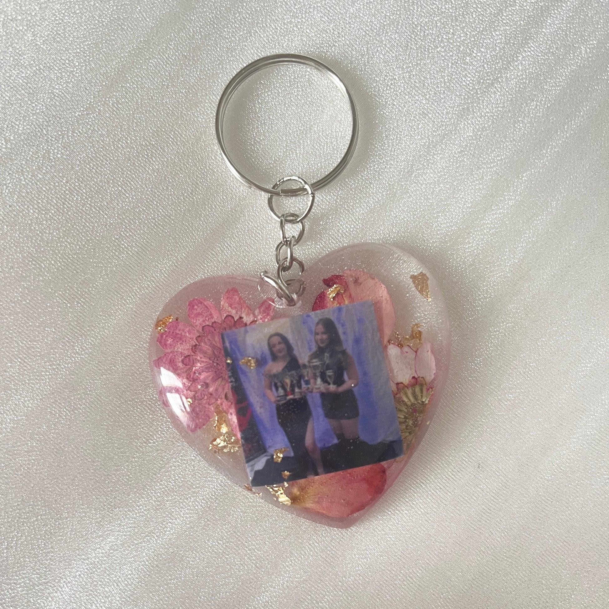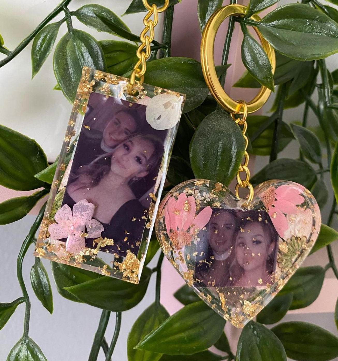 Add a personal touch to your keychain with our Personalised Photo Resin Keyring. Made with real flower petals and coloured foil, this keychain is perfect for gifts and birthdays. Preserve your special memories in a unique and beautiful way.