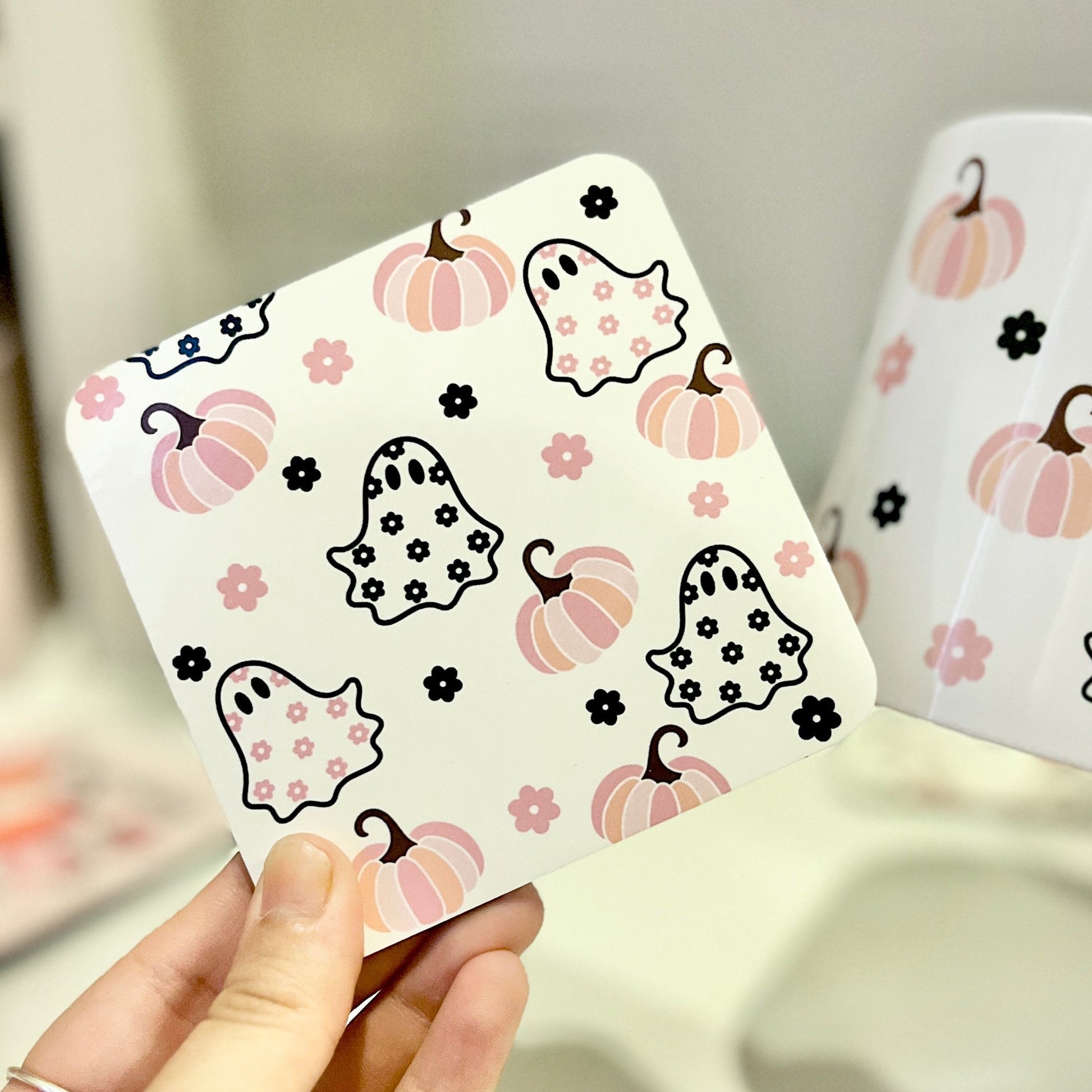 Add a touch of spooky fun to your home with our Pink Spooky Ghost Cork Coaster! This unique coaster features a playful pattern of pink ghosts, perfect for Halloween or autumn decor. The cork back ensures it stays in place while also protecting your surfaces.
